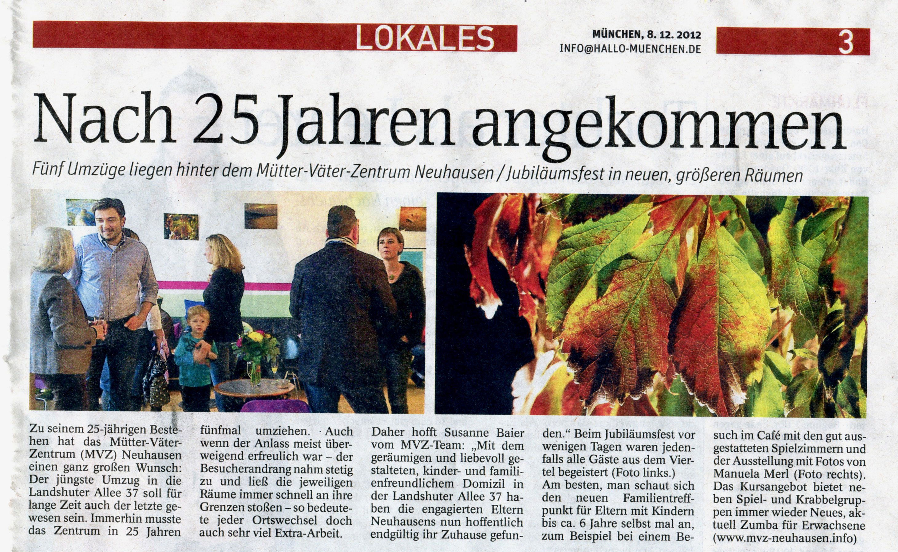 "Hallo München vom 08.12.2012" Zeitungsartikel mit Erwähung meiner Ausstellung